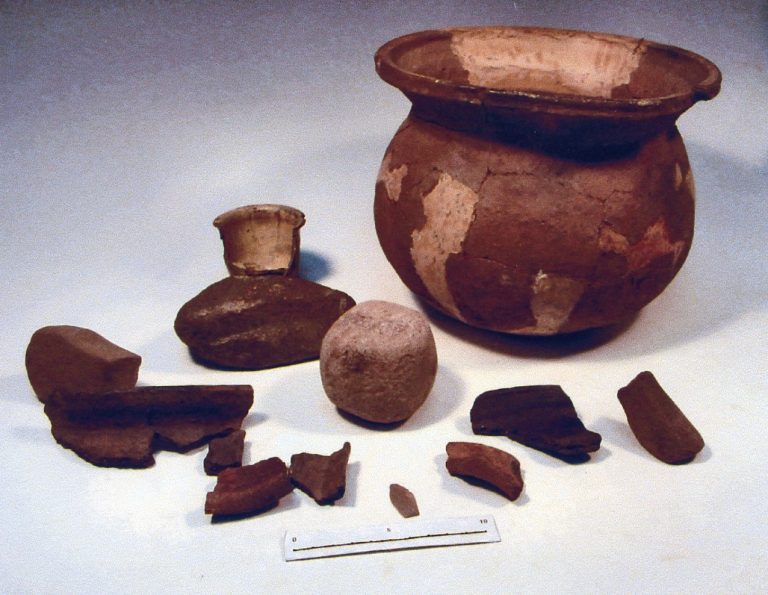 onder andere vuurstenen van rond 2000 jaar voor Christus, kubusstenen van 800 jaar voor Christus waar mee je met de hand kon malen, stokken en potten uit de Romeinse tijd en kogelpotten uit de 14e eeuw