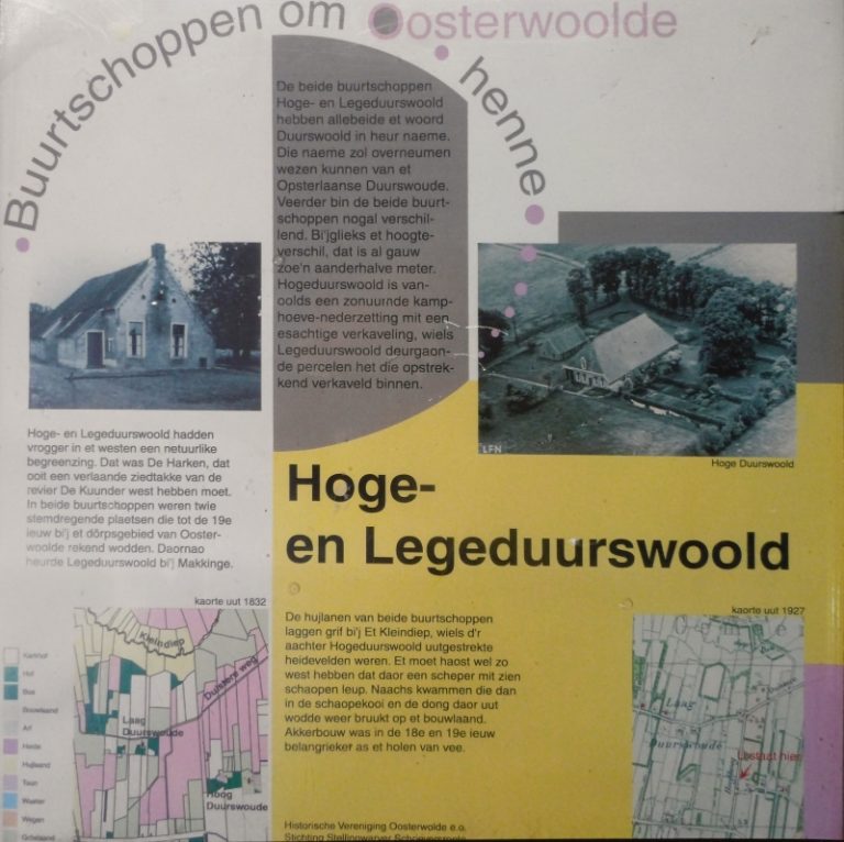 De buurtschappen Hoge- en Legeduurswoold hebben allebei het woord Duurswoold in hun naam. Die naam zou overgenomen zijn van het Opsterlandse Duurswoude. Voor de rest zijn de beide buurtschappen nogal verschillend. Zoals bijvoorbeeld het hoogteverschil, dat is al gauw zo’n anderhalve meter.